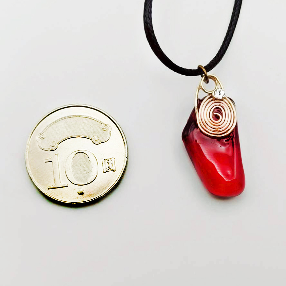 《曙光紅》|手工金繞・玫瑰紅海玻璃項鍊
