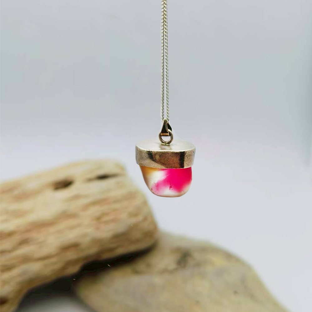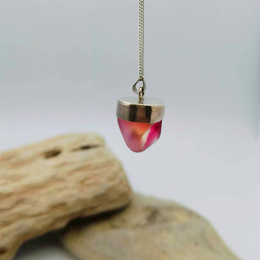 《晨曦玫瑰》|銀包鑲・漸層海玻璃項鍊