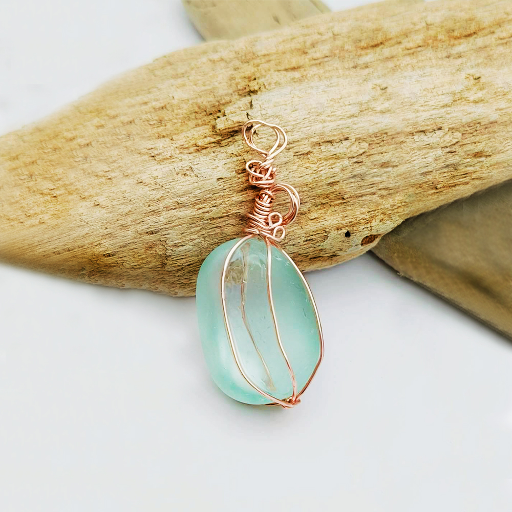 天然海玻璃經大海數十年沖刷,保留圓潤外型與自然霧面質感。 玻璃本體呈現淡淡天空藍色,隱約透光,如清晨陽光灑落海面,溫柔而靜謐。 搭配玫瑰金鋁線手工包鑲,沿著自然曲線設計出流動感線條,展現簡潔高雅的獨特風格。 每一件皆為大海獨一無二的禮物,兼具環保意義與美學價值。