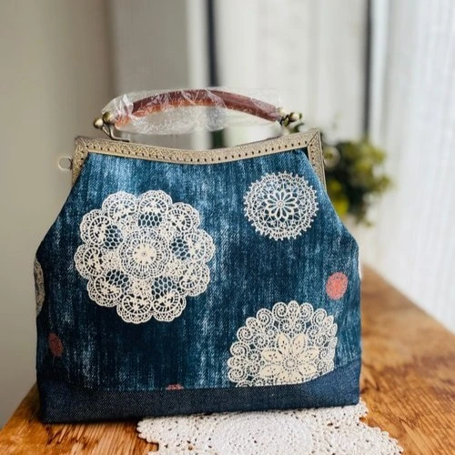 牛仔蕾絲口金側包