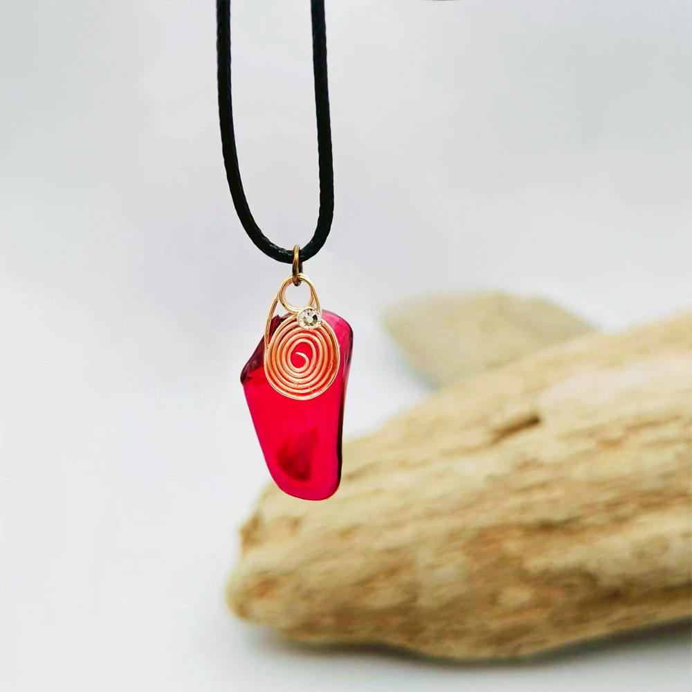 《曙光紅》|手工金繞・玫瑰紅海玻璃項鍊