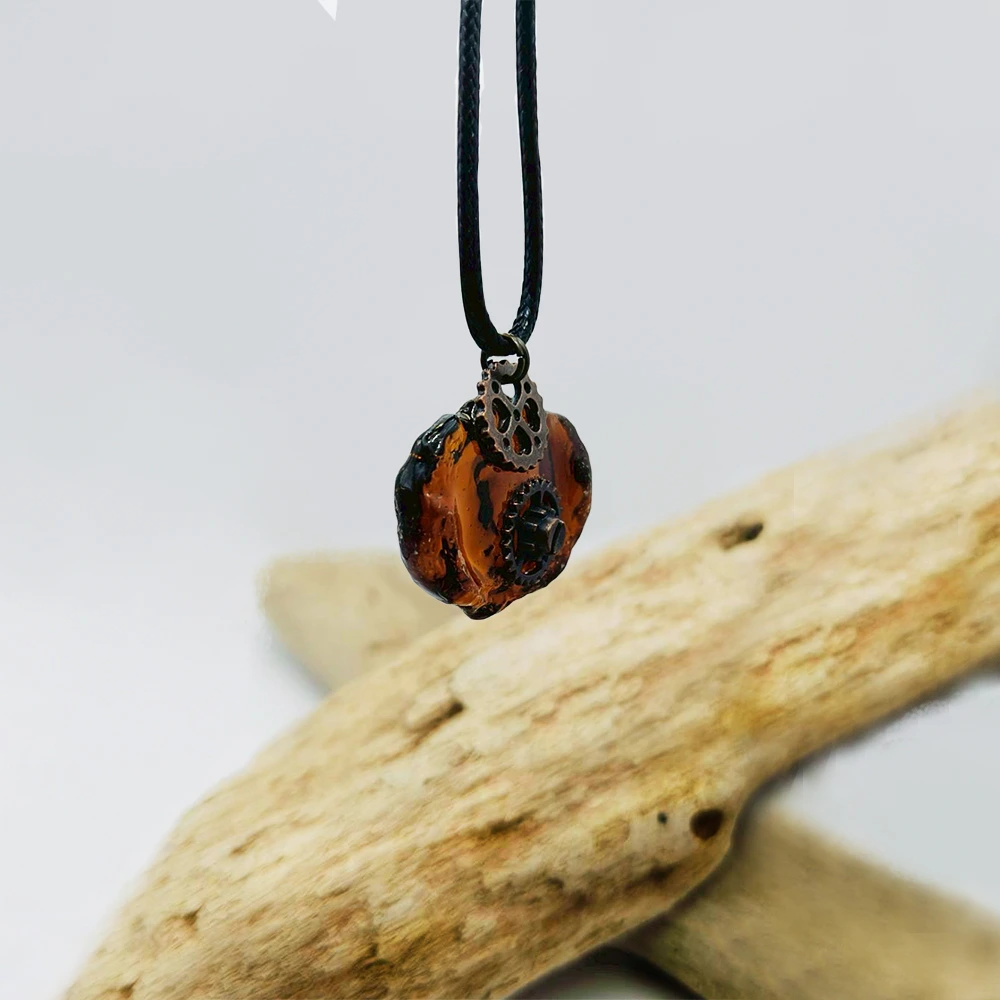 《時光齒輪》|工業風琥珀海玻璃項鍊