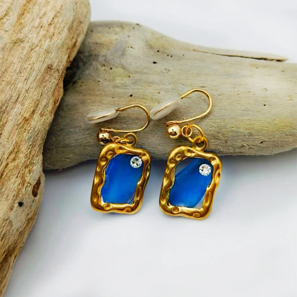 《靛海微光》|海玻璃金緣耳環