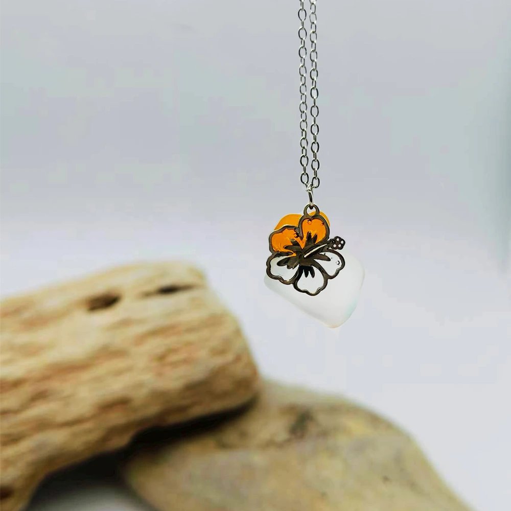 《橙光花語》|雙色海玻璃花影項鍊
