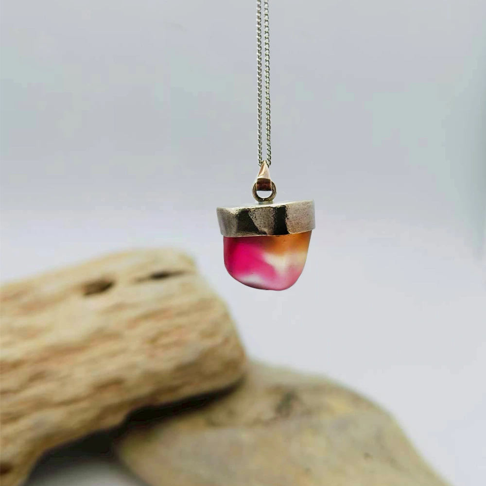 《晨曦玫瑰》|銀包鑲・漸層海玻璃項鍊